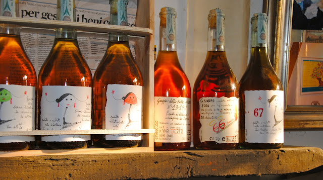 In fact, apart from the actual grappa he made, one of the most special things about him, is that he painted all the labels, each and every one by hand. His own characters like the stick figure “la donna selvatica” or the “wild woman” have become symbolic of the grappa.