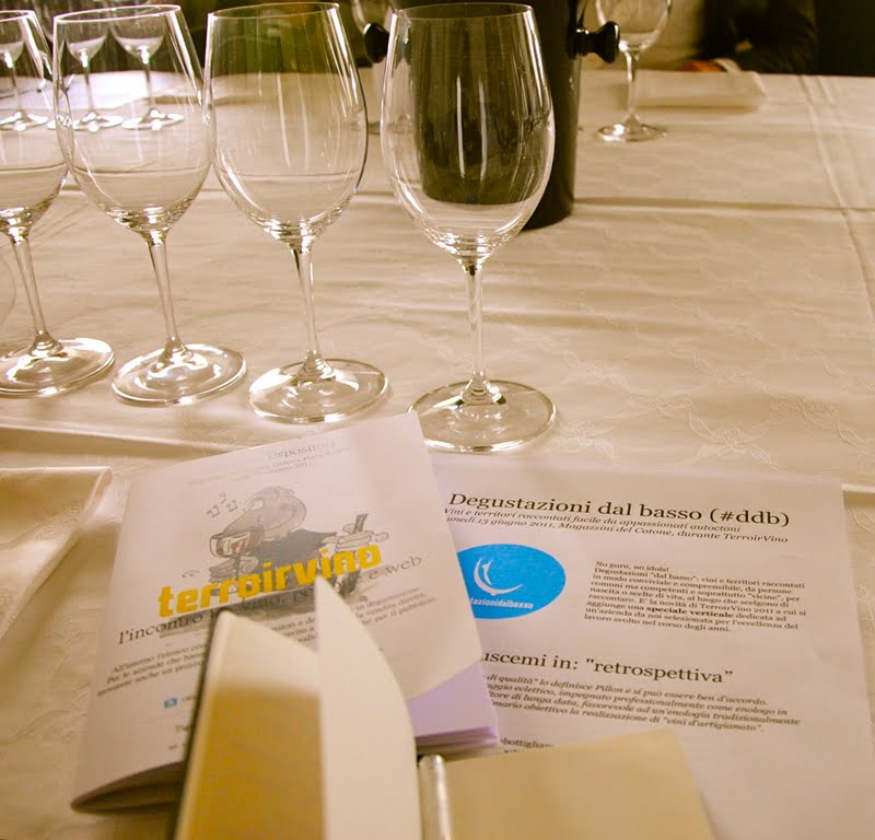 Feeling a little overwhelmed about writing this post, I decided to follow organizer/creator Fillipo Ronco’s advice and start from the beginning talking bit by bit about the grand wine event called Terroir Vino. What initially attracted me there was the #ddb (degustazione dal basso) a grassroots wine tasting and discussion tagged with the motto “no gurus, no idols!” When I heard about this idea I didn’t hesitate to hop onto the Genova train “sola” with notebook, camera, flip video and wine glass in hand.