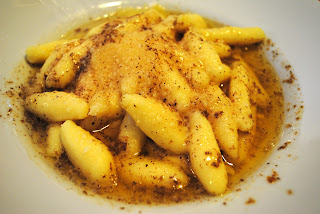 The other vegetarian dish offered was POLENTA CONCIA. I asked the waitress what it was and she said polenta with cheese. However she did not mention that it was a polenta mixed with various cheeses and bathed in melted butter! So who says Italians don’t eat butter! Forget your diet for a day!